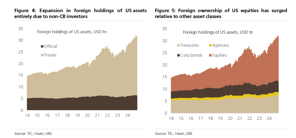 “美国破例论”的神话正在褪色。那些已经将资金猖狂涌入美国资产的投资者,现在正面对着一个严格的事实:已经支持美元霸权的“美国破例论”正在接收来自多重要素的严格磨练。13日,瑞银的最新讲演敲响了警钟, 讲演指出,跟着中国在科技跟人工智能范畴的突起、美国经济增加预期因商业摩擦跟压缩的财务政策而降落,以及欧洲雄心壮志的保险政策激发的财务付出跟增加减速的盼望,都对美国资产的“超配”位置形成了挑衅。这些要素正在摇动从前十多年树立起来的对美国资产的适度设置。瑞银指出,约14万亿美元的美国无对冲资产面对危险,估计若外资减持5%,可激发7000亿美元的美元兜售。讲演指出,美元可能因本国投资者对美国资产信念的降落而面对升值压力,尤其是在欧洲投资者年夜幅增添美国股票持有量的配景下,欧元可能成为美元的重要敌手货泉。美沙巴体育唯一官方网站银克日的一份讲演也表现,美元看跌情感与投资者的美元敞口之间的差距到达2020年时的程度,可能预示bat365在线平台官网美元将进一步下跌。美元人气已急剧逆转至2021年以来最达观。剖析师Adarsh Sinha表现:“固然仓位已转为空头,但重大滞后于情感的剧变。”寰球资源的“从新站队”依据瑞银证券的最新研讨讲演,寰球资源活动的格式正在产生变更。现在,本国投资者持有约20.1万亿美元的美国股票跟债券,此中约13.7万亿美元为未对冲的美元资产。但是,跟着“美国破例论”的摇动,这些资产的吸引力正鄙人降。在从前十年中,本国投资者对美国资产的持有构造产生了明显变更。私家投资者逐步代替央行成为美国资产的重要持有者,其占比从十年前的65%回升到80%。与央行持有的外汇贮备差别,私家投资者的资产设置愈加机动,对市场情感跟经济远景的变更更为敏感。别的,本国投资者对美国股票的持有比例也在回升,现在持有约30%的美国市场总市值,而美国投资者持有本国股票的比例仅为23%。